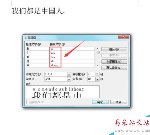 8、設置完成后,點擊確定,可以看到文字的拼音就添加上了,如圖所示:
