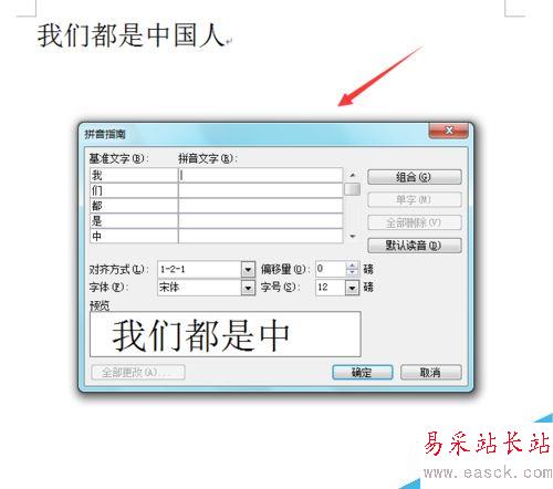5、點擊拼音指南選項,彈出拼音指南對話框,如圖所示: