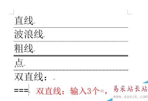 6、雙直線的話,先輸入三個=,按回車鍵就可以。