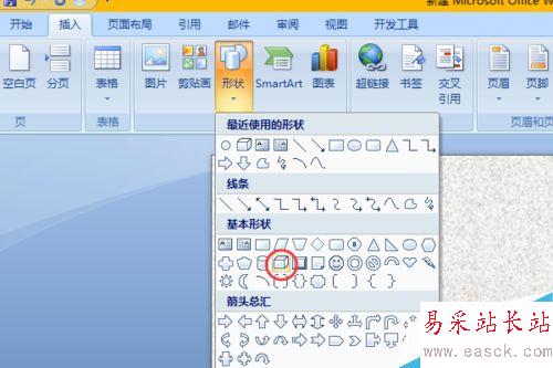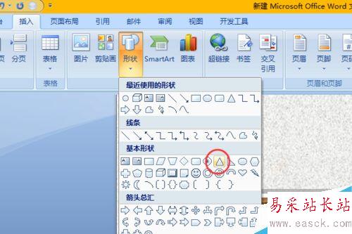 11、相框的基本框架已經有了,現在我們制作一個等腰三角形。仍然在插入選項卡中形狀下面的基本形狀中選擇。