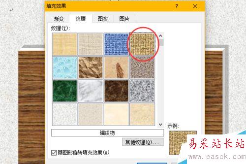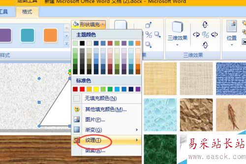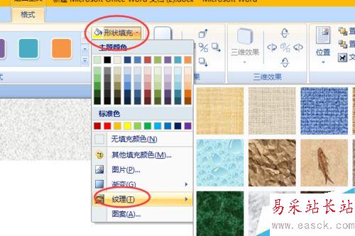 9、然后在形狀填充中,選擇紋理。在紋理列表中我們選擇一種“深色木質”紋理。