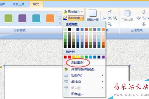 8、首先我們將正方體的輪廓去掉,選中正方體,在格式選項卡中,單擊形狀輪廓下的無輪廓即可。