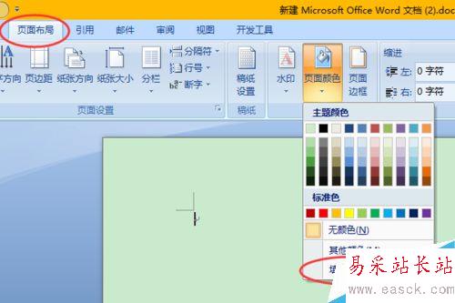 2、首先我們創建一個空白的word文檔,在頁面布局選項卡中找到頁面背景組,單擊頁面顏色下面的填充效果。