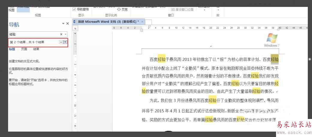 5、輸入文檔,例如經驗,發現只要是文檔中出現的該詞語,右側都凸顯出來了,并且統計出來了結果。