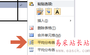 3、再用鼠標左鍵點選彈出菜單中的“平均分布各行”。
