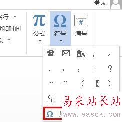 2、切換到“插入”選項卡, 單擊“符號”組中的“符號”按鈕,在彈出的下拉列表中選擇“其他符號”選項。