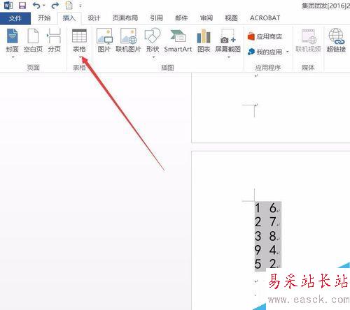 3、選中所有文字,然后在菜單欄的“插入”選項卡中點擊“表格”按鈕