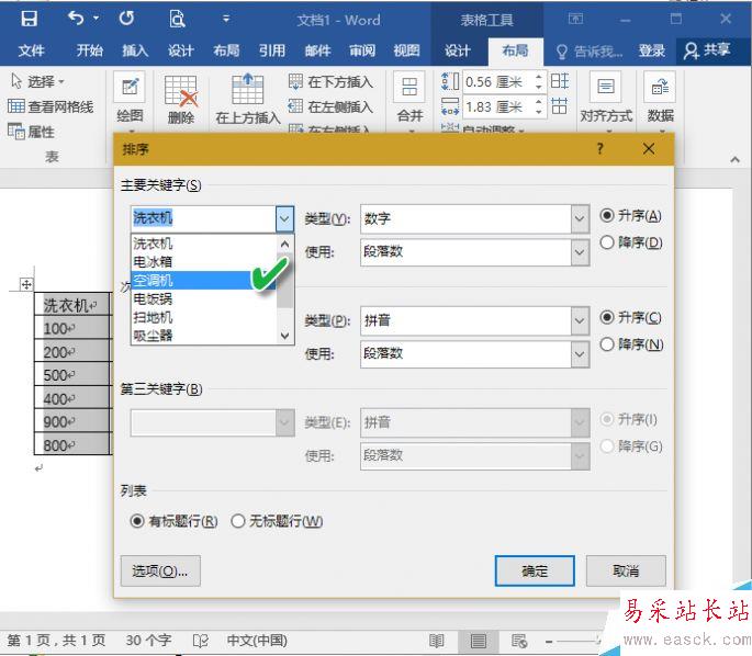 有的表格的標題行不在上面,而在左側一列。這時排序時第一行也要參與。選中“有標題行”單選框,在“主要關鍵字”區域,單擊關鍵字下拉三角按鈕選擇排序依據的主要關鍵字。