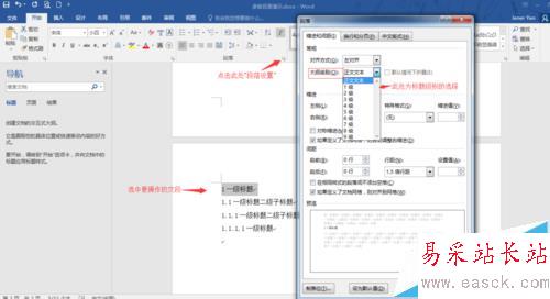 1、利用word“段落”中自帶的“大綱級別”進行設置不同級別的標題。