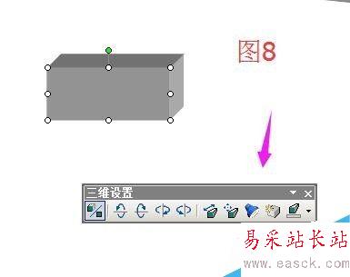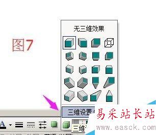點(diǎn)“三維設(shè)置”調(diào)出三維工具箱;點(diǎn)工具箱的角度按鈕和深度按鈕,調(diào)整大小角度,最后的效果如圖13;