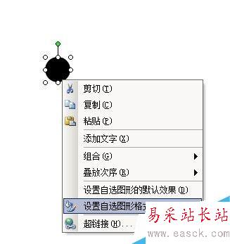 4、鼠標右鍵點下圓形,彈出的菜單中點“設置自選圖形格式”;