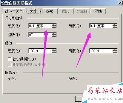 5、在框內的“高度”和“寬度”分別輸入“0.1”;