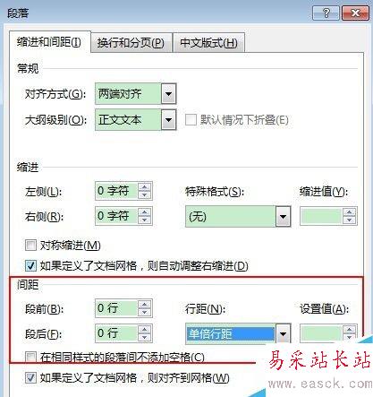 3、而如果你需要詳細設置間距,如段前段后間距,則可以選擇最下面兩項之一:
