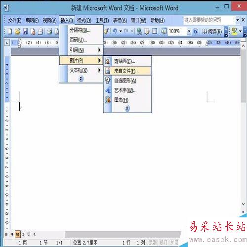3、在插入的列表中選擇圖片,然后在子菜單中點擊來自文件