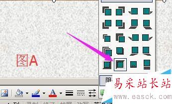 6、現(xiàn)在設置下立方體的陰影。點下立方體,表示選中立方體;再點繪圖工具欄的陰影設置,點選陰影的樣式18,如圖A所示;立方體陰影設置最終效果如圖B所示。