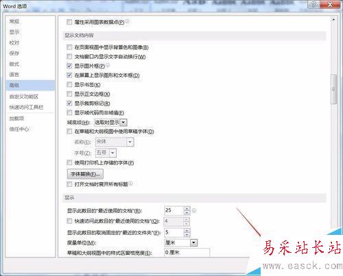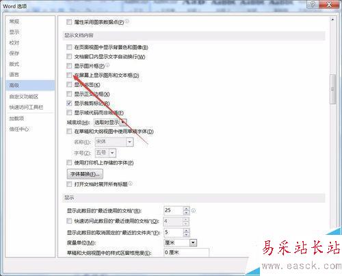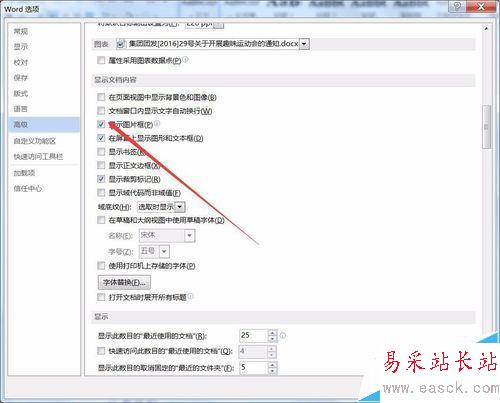 6、如果要把文檔中非嵌入式的圖片也一起隱藏,直接把上一步的“顯示圖片復(fù)選框”對勾取消,然后把下面的“在屏幕上顯示圖像和文本框”復(fù)選框?qū)匆踩∠?/p>