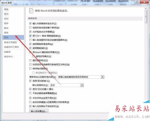 2、然后打開Word選項對話框,在左側(cè)點擊“高級”選項。