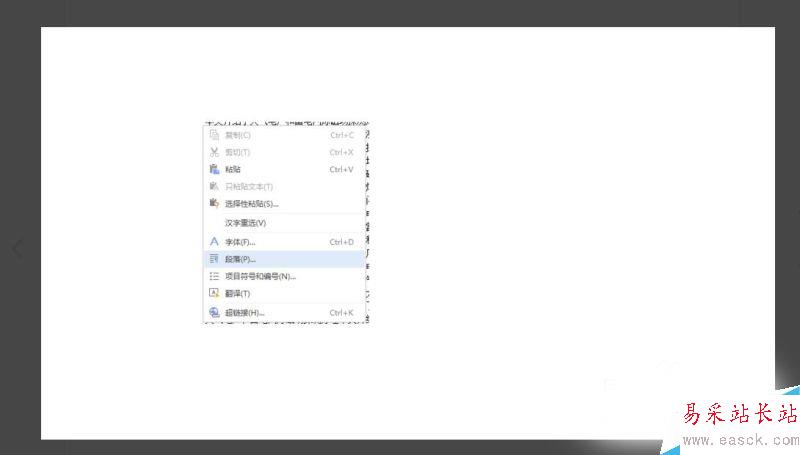 3、單擊鼠標右鍵,你會看見一個“段落”選項