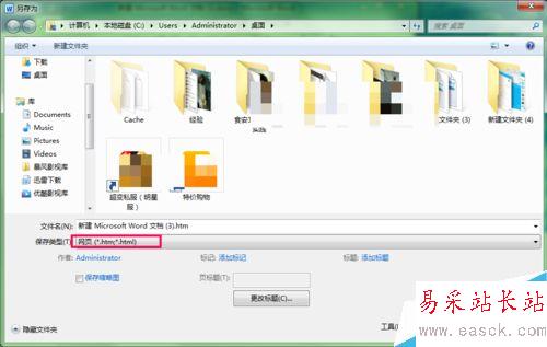 3、我們把文件類別選擇為網頁htm屬性 如圖