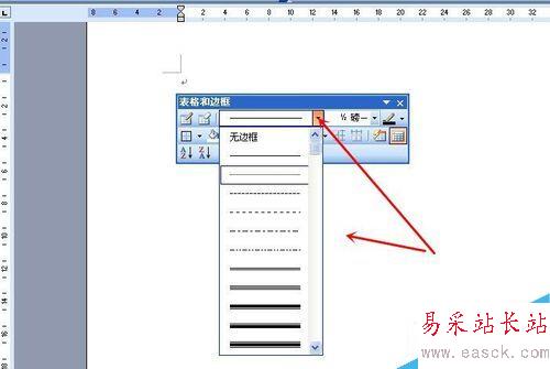 2、彈出的小窗口就是繪制表格所需要的各種工具。有繪制表格,擦除表格等,還可以設定表格線條是實線,虛線,多線條等。還可以設定線條的粗細。