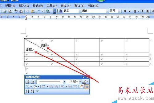 6、在斜線格中輸入文字時可使用空格鍵和回車鍵來調整文字的位置。