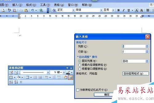 3、我們設定好要做的表格數目可以使用插入表格,一次性將表格畫出來。在彈出的窗口中設定表格的行數、列數、寬度等內容
