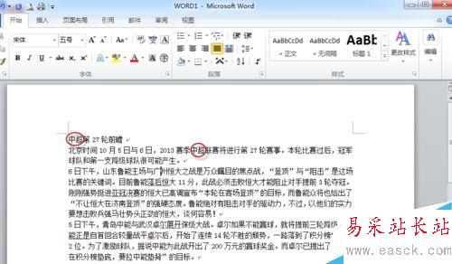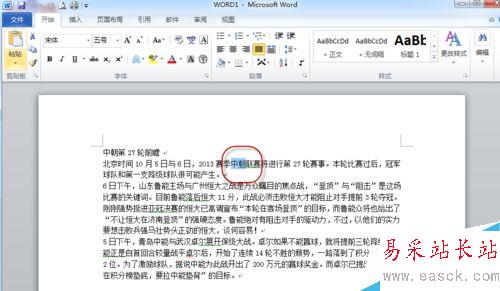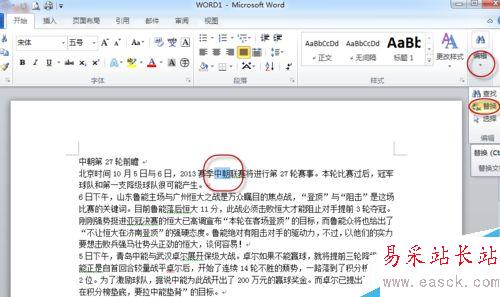 2、選定一個(gè)要更改的字或詞語(也可不選定,在后面對(duì)話框中輸入);例,把“中朝”更替為“中超”,如圖