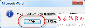 6、繼續(xù)跳出來查找結(jié)果的對(duì)話框,點(diǎn)“確定”;例,如圖