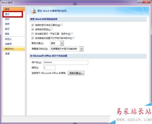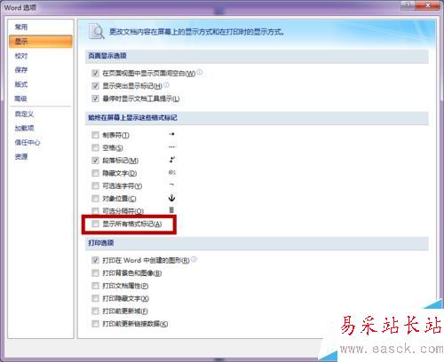 6、在“word選項”頁面選擇“顯示”選項卡,勾選“顯示所有格式圖標”項。
