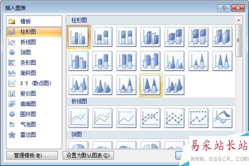 4、點擊圖表,選擇自己想要的圖形形狀,當然我們在選擇形狀的時候也要根據自己的excel表格中的數據來進行選擇,找一個合適的圖表才能更加的得體。