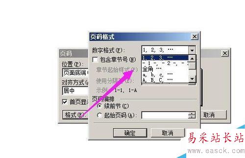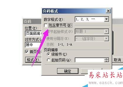 如果頁碼中需要包含章節號的話,就在“包含章節號”這里打上勾,如果不需要不用打勾。