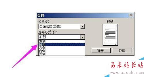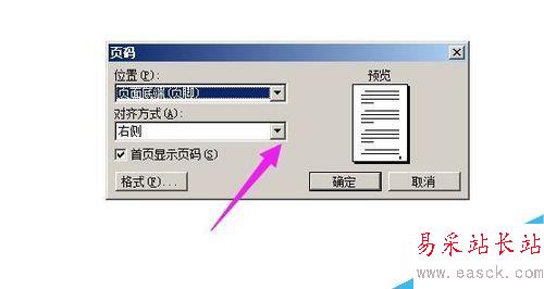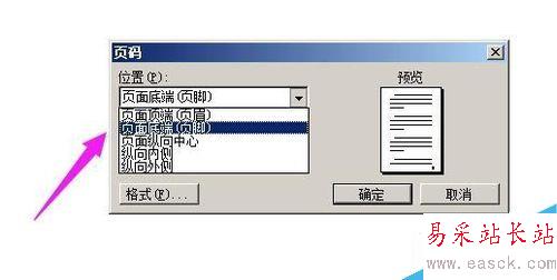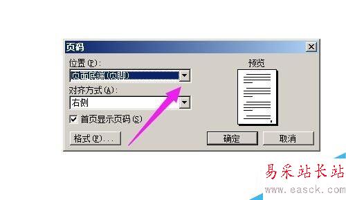 2、彈出的設置框中,點“位置”這里的三角形,彈出下拉菜單,選擇頁碼顯示的位置,小編在這里點選“頁面底端”;
