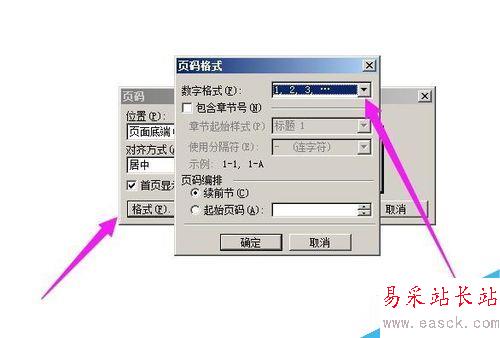 然后,點“格式”這里,彈出設置頁碼格式設置框。