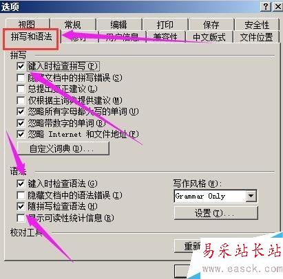 然后,再把”鍵入時檢查拼寫“前面的勾取消;