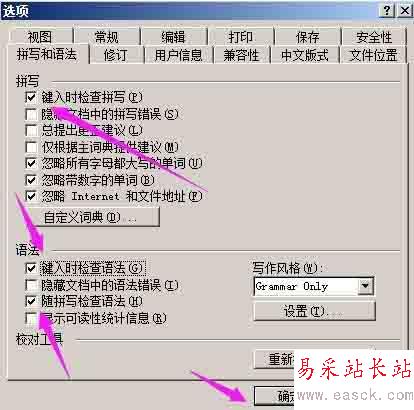 6、若想恢復原來的拼寫檢查,可以在菜單欄上點”工具“再點”選項“,彈出的操作框中,把步驟4里取消的勾重新打上勾,再點確定。