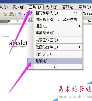 在文檔上方的菜單欄中,順序點:工具--選項;