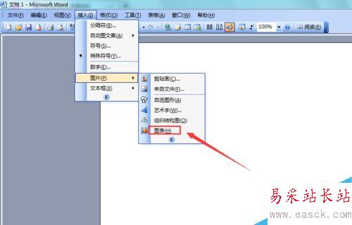 4、點擊圖片選項,進入下拉選項,在其下拉選項里找到圖表選項,如圖所示: