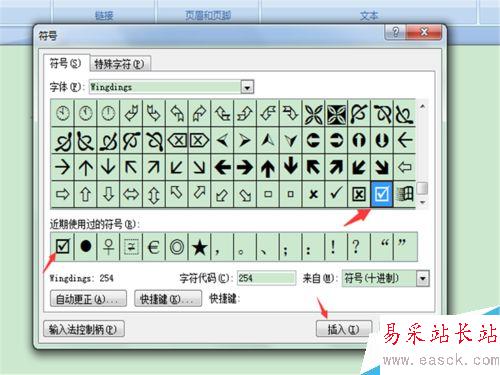 6、在符號(S)界面,將右側(cè)的下拉到最下角,在倒數(shù)第二個你會發(fā)現(xiàn)勾號,點擊后,右下角插入即可。