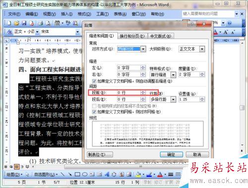 點擊后會進入這個界面,在新的界面中查看間距,如圖所示,有圖可以知道,我們的正文段前間距是0行。