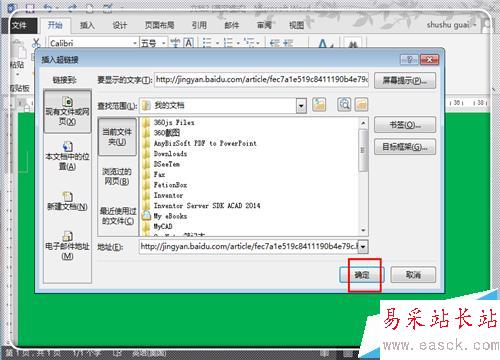 2、點擊組合鍵“ctrl+k”,進入超鏈接設置窗口,當然這里也可以選中,然后點擊右鍵,然后點擊“超鏈接”進來。直接點擊“確定”。