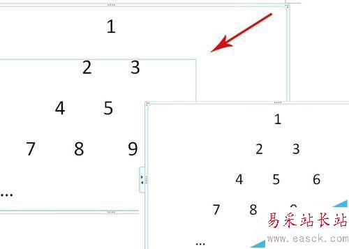 5、回到文本欄3,在其中輸入4、5、6,每兩字之間添加空格鍵,使數字5與上層的3對齊,同樣5與6之間添加同樣多的空格。圖中同樣可以觀察數字擺放是否合適。
