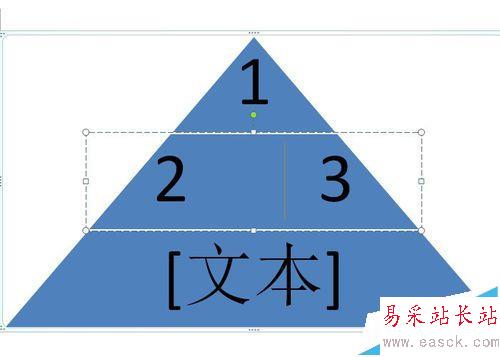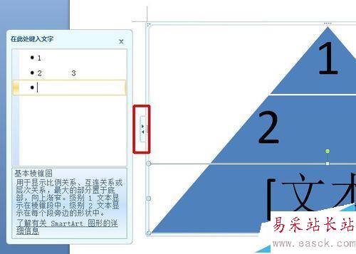 4、鼠標放在文本3中,按下兩次回車,添加兩個文本欄,同時圖中金字塔也增加兩層。