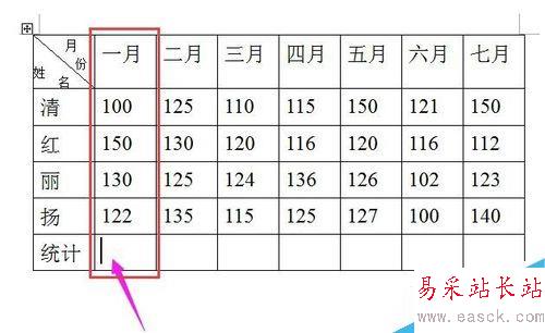 光標放在表格中的“一月”這欄下方的空白格內,表示要計算“一月”的總數,如圖所示。