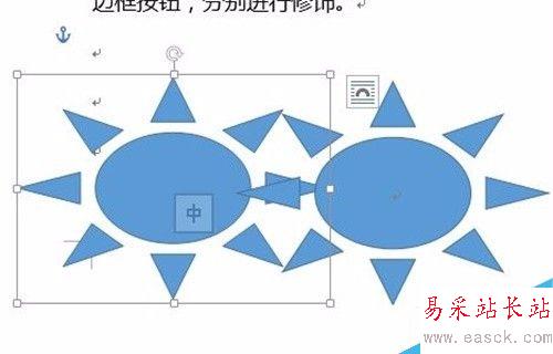 4、調整圖形的大小。單擊要調整的圖形,周圍會出現調整句柄,拖動句柄可以調整大小。調大小時,按住shift鍵拖動句柄可以保證圖片按比例放大縮小。按住ctrl鍵拖動句柄可以以圖形中心為基點放大縮小。