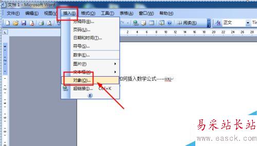 2、選擇“插入”菜單中的----“對象”,打開對象的對話框。