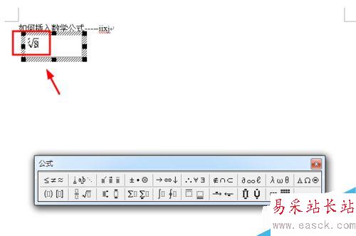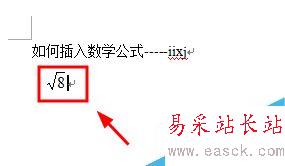 6、選擇好公式后,會自動填入到word文檔中,然后在光標處輸入相應的數字,比如下面的對8開根號。