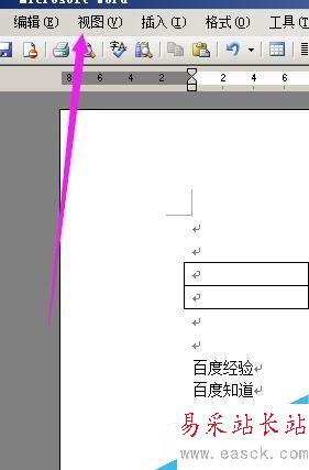 6、若想文檔中恢復段落箭頭??梢栽冱c菜單欄的“視圖”,再在下拉的菜單中點下“顯示段落標記”,箭頭即顯示出來。