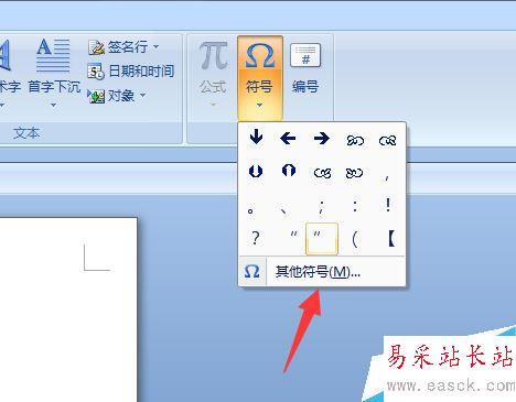 2、選擇插入欄中最后面的符號按鈕,這上面已經記錄了有使用過的圖案,如果這里有就直接選擇,如果沒有就點選擇其他符號按鈕。