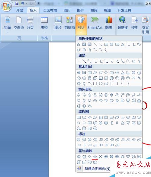 打開word選擇選項(xiàng)中的插入,然后單擊插入中的形狀,找到橢圓的圖形。