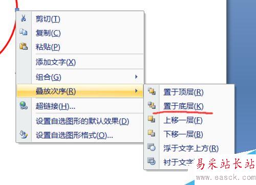 右鍵選中這個(gè)圓經(jīng)疊放次序調(diào)整為至于底層。
